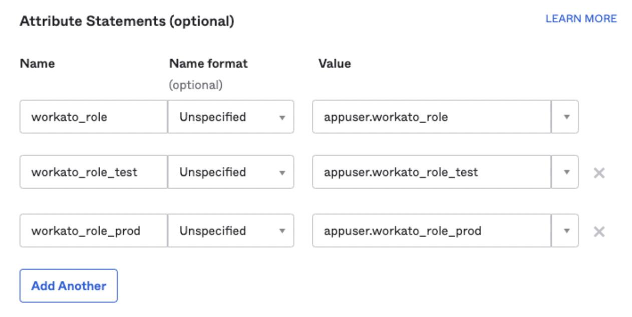 Attribute Statements for workato_role in Okta