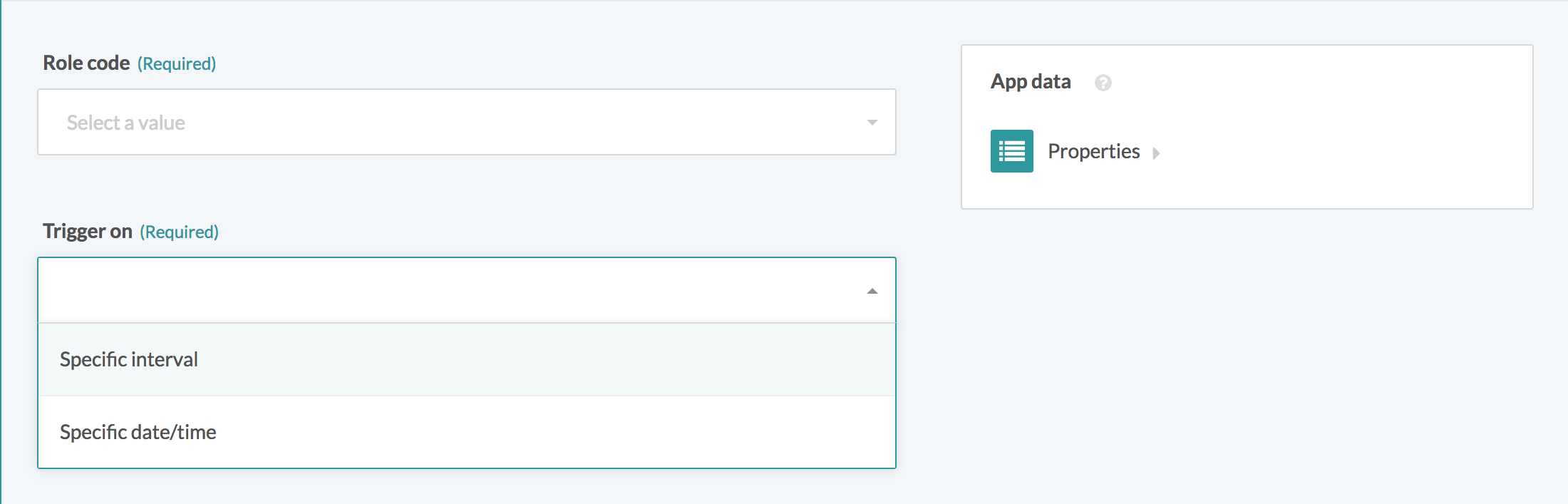 スケジュールの種類として、[Specific interval] または [Specific date/time] を選択します。