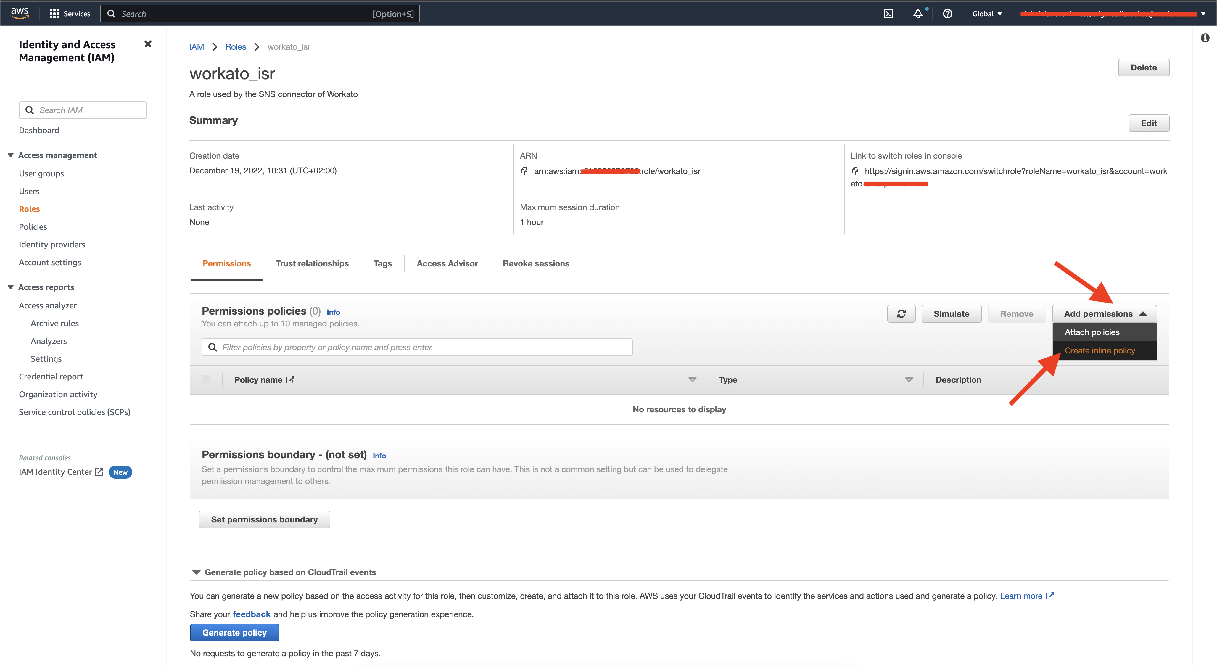 新しい ISR を作成し、IAM ロールの ARN を取得するには、以下のガイドに従ってください。