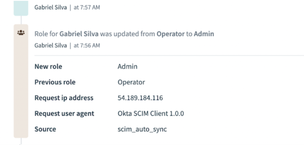 ユーザーがアクティブなセッションを持っている場合、SCIM を介してロールを更新すると、ロールの変更がすぐに反映されます。そのため、ユーザーが Workato で次に行うアクションによって、Okta で指定されたルールに従ってアクセス権限が更新されます。