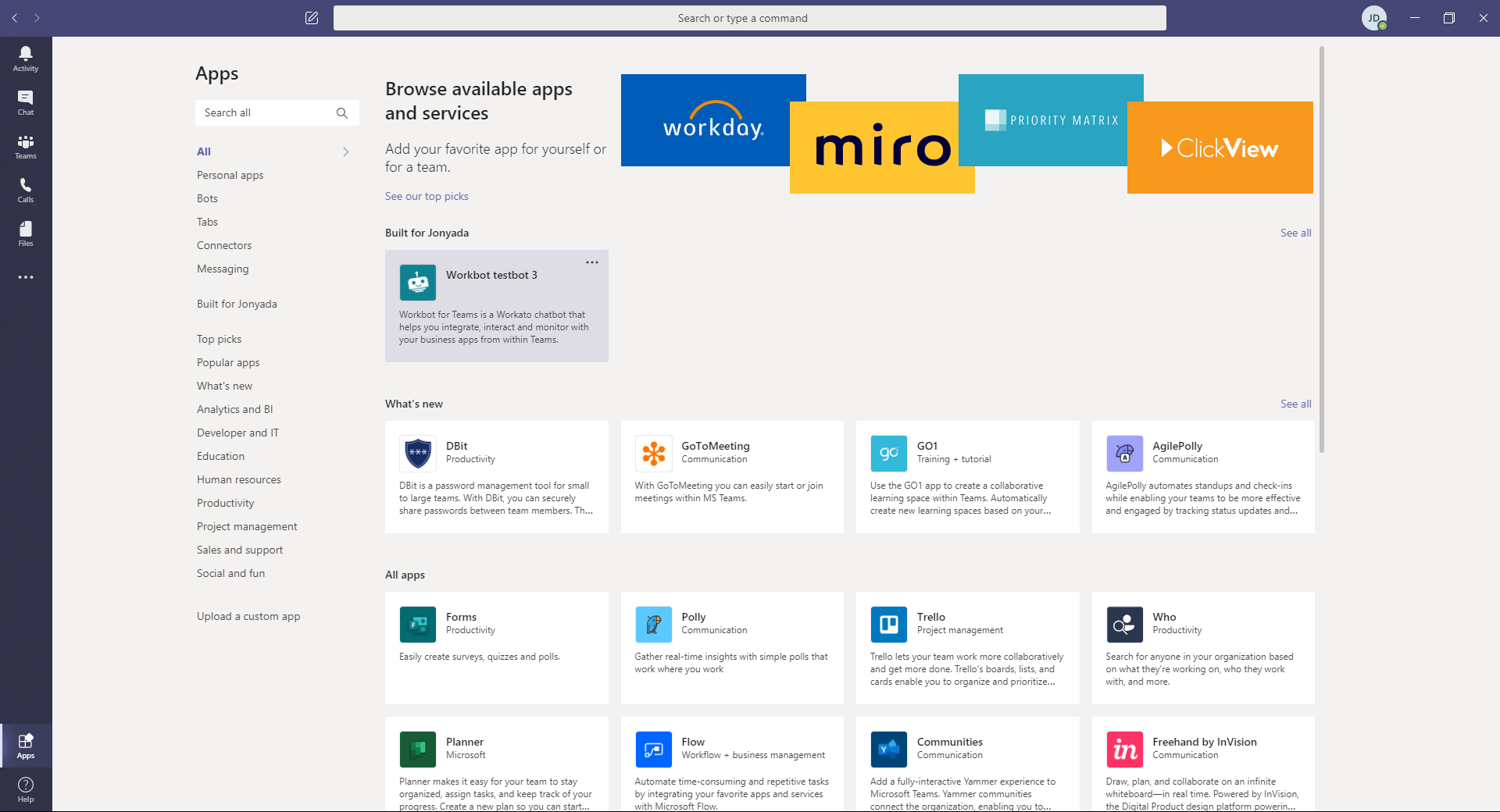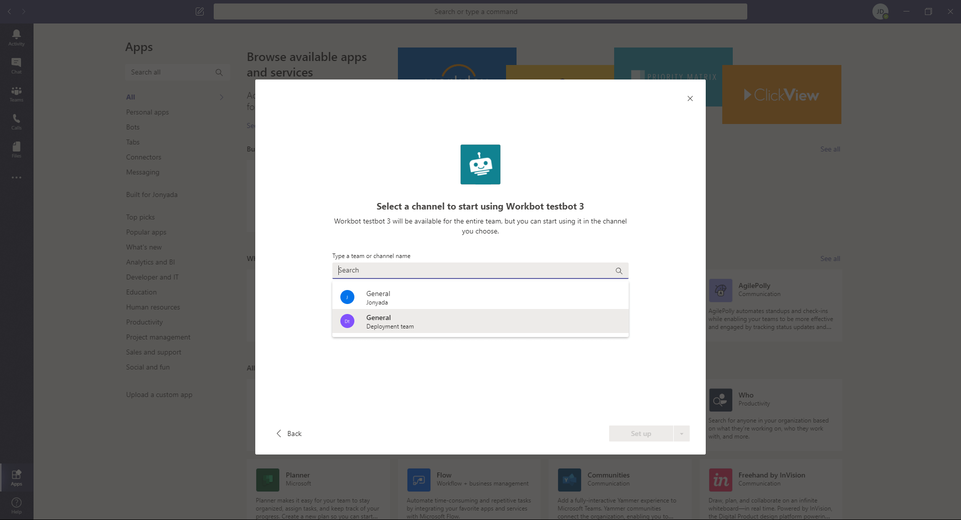Search for and click on Workbot for Microsoft Teams in the list of apps.