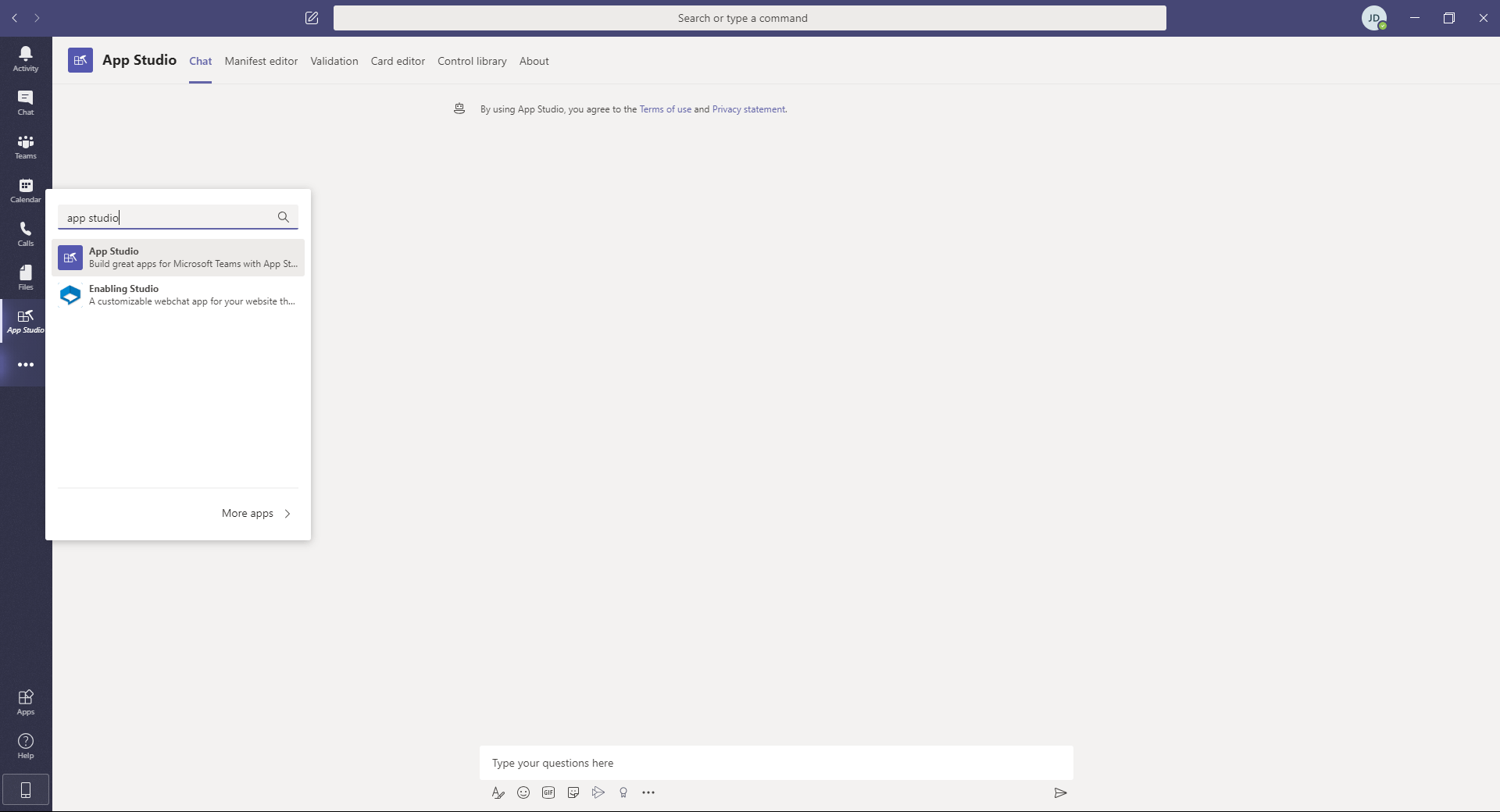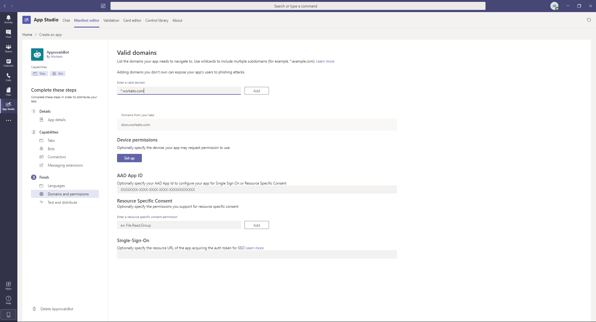Navigate back to Microsoft Teams App Studio.