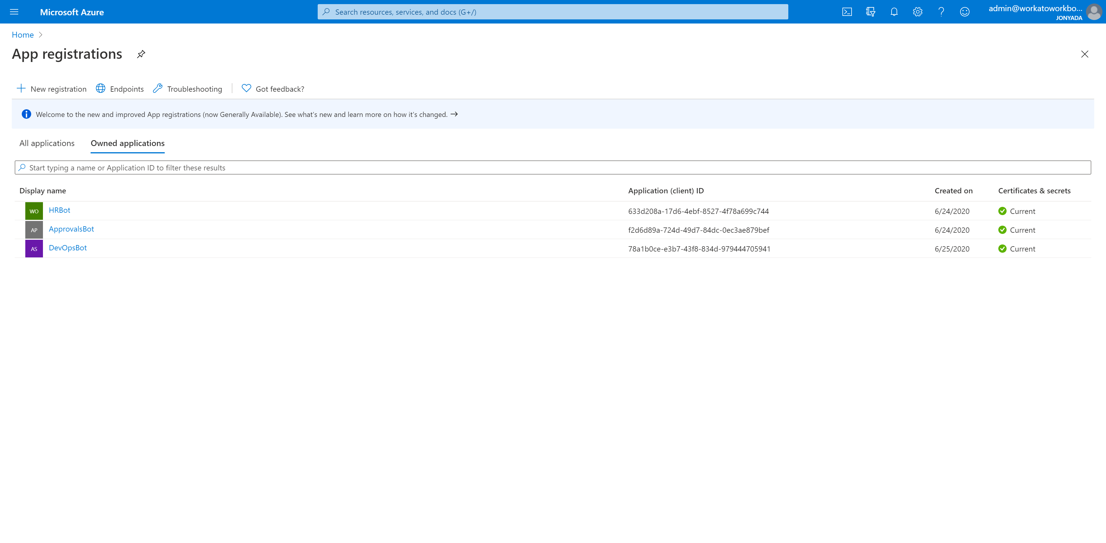 • Branding: We recommend using your app's own icons, but the default Workbot icons can also be used. If using your own, verify that the icons meet Microsoft's size requirements.