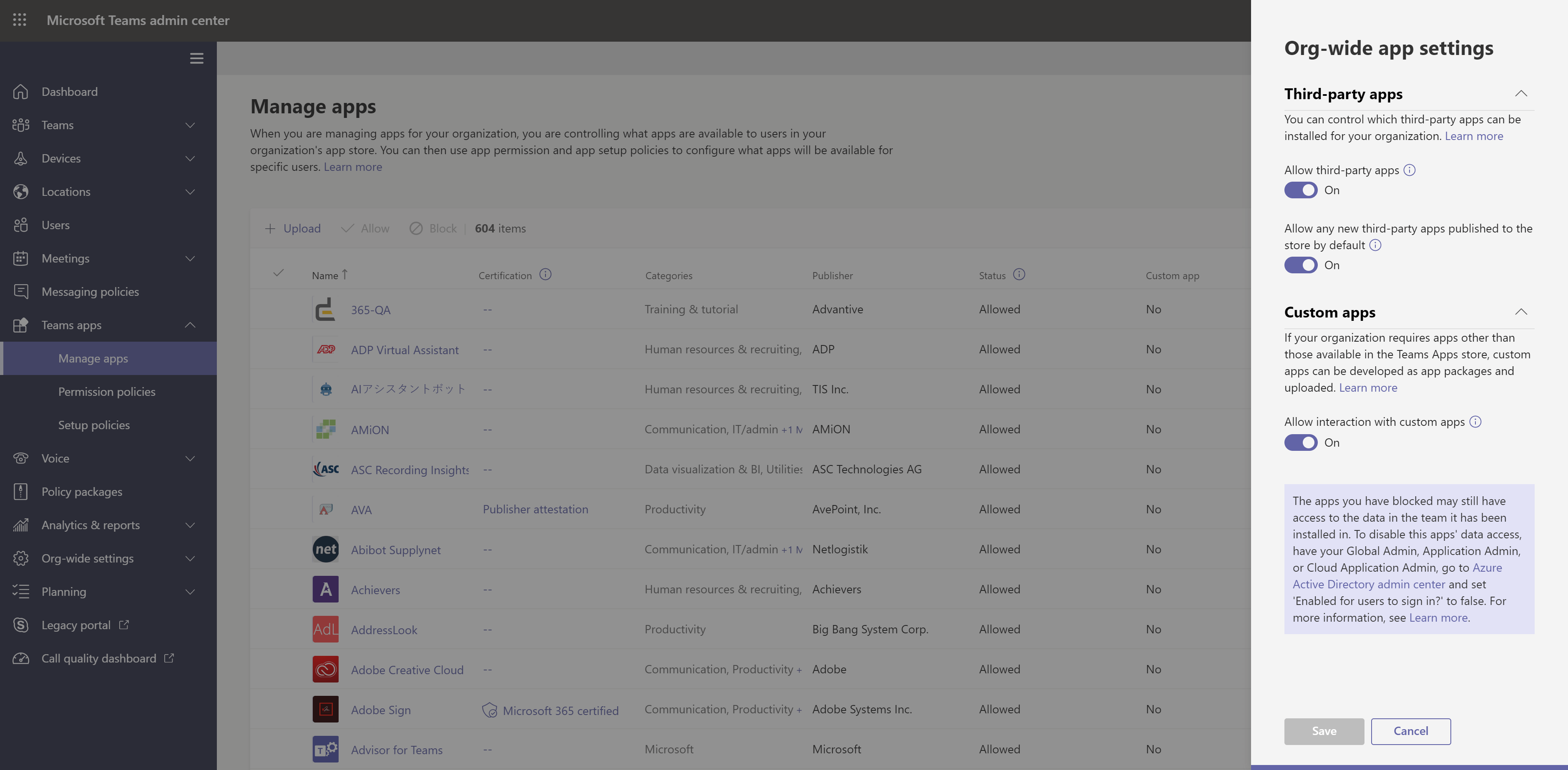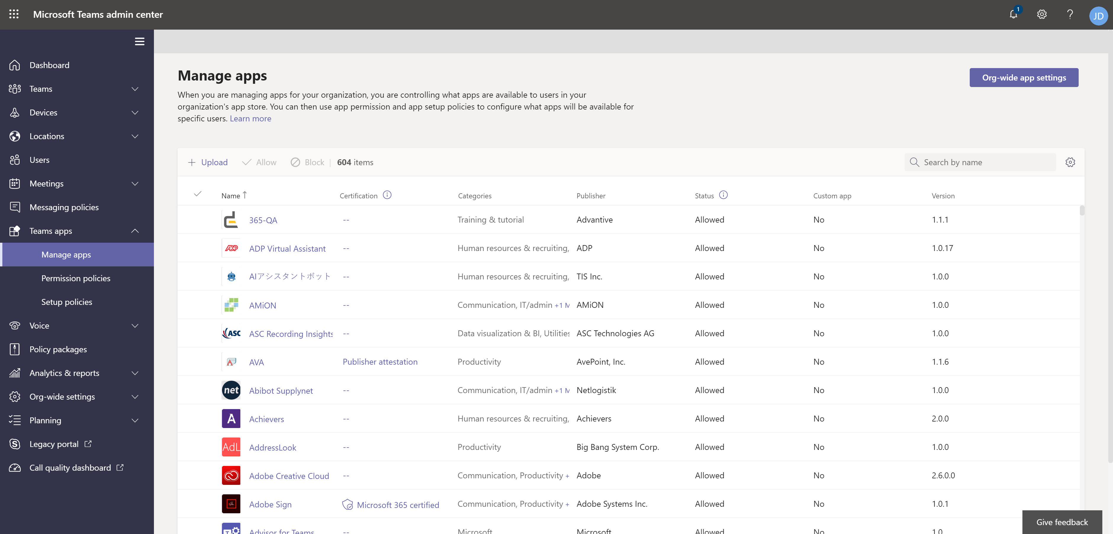 In the left navigation bar, navigate to Teams apps > Manage apps.