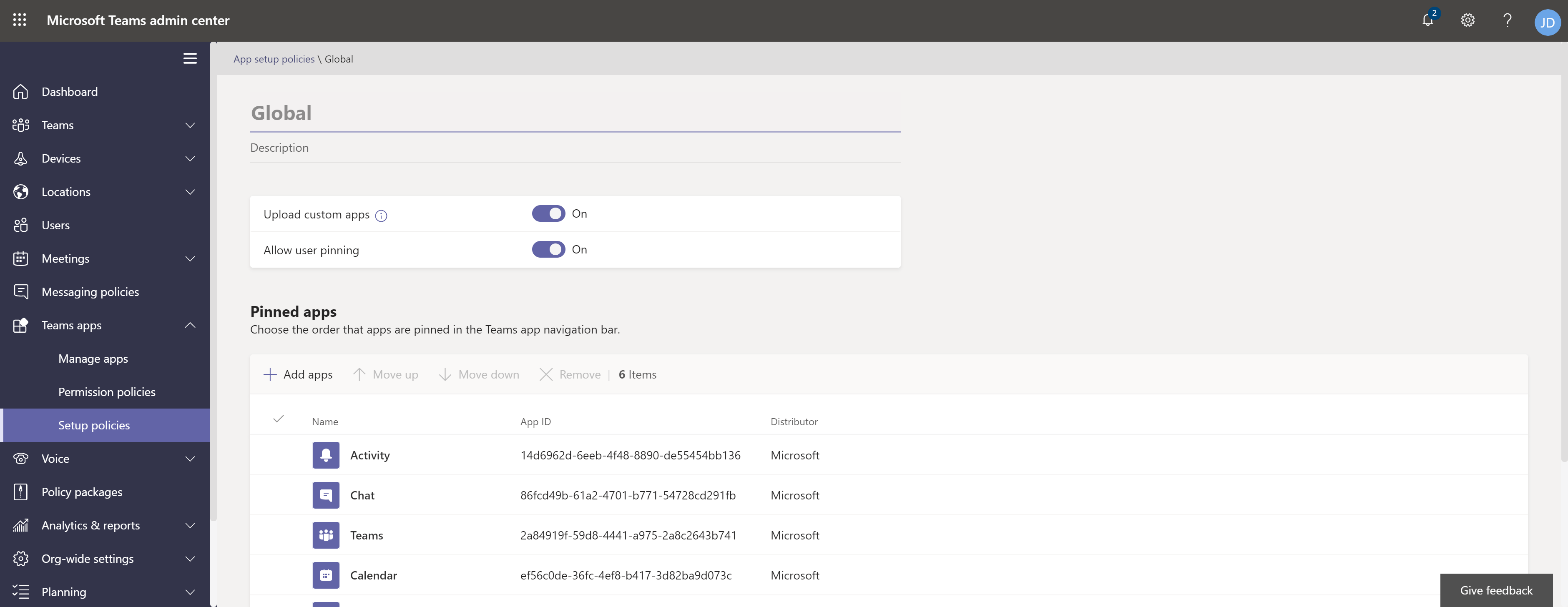 Go to Teams apps > Setup policies.